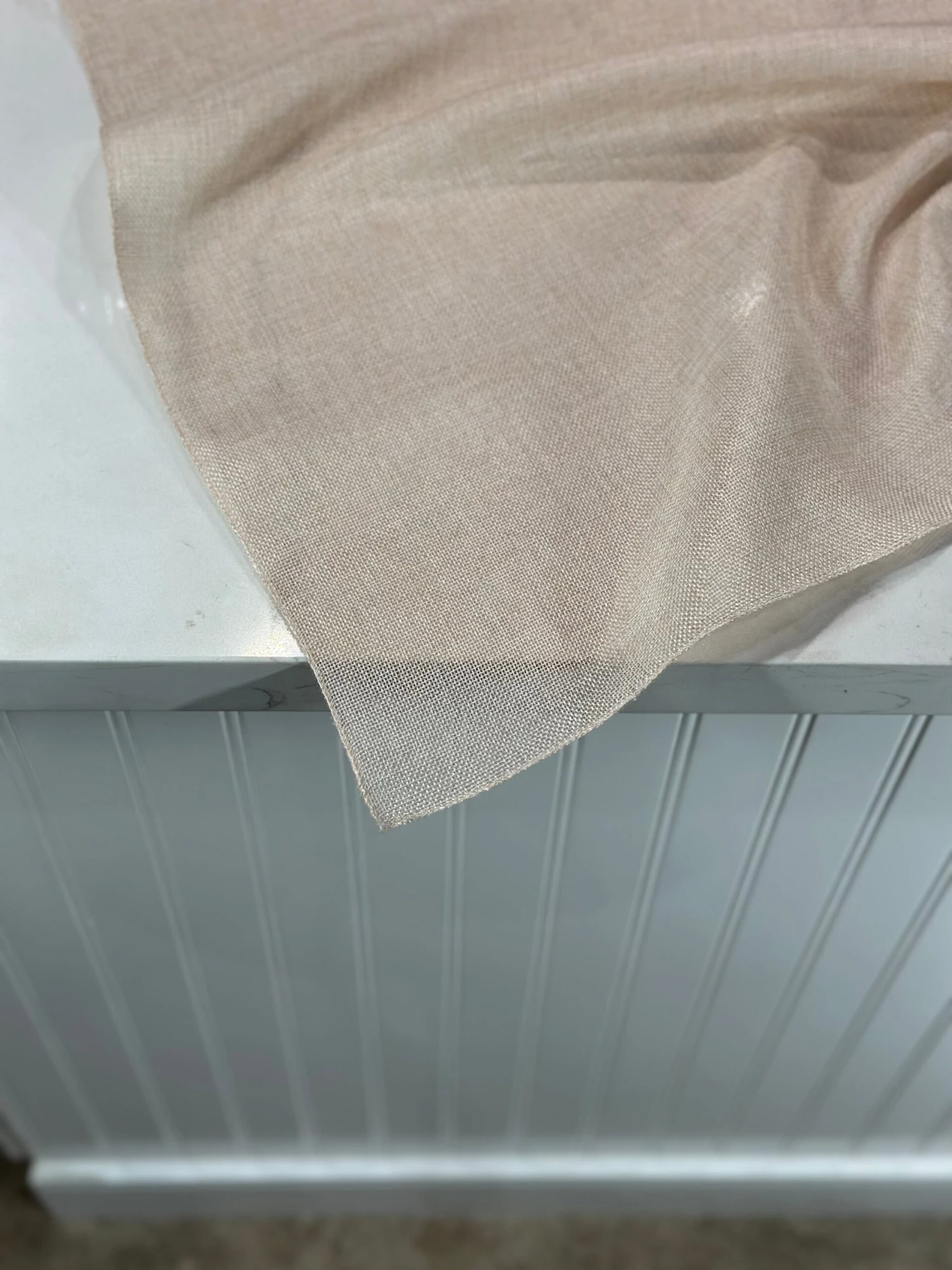 Fabric Collection: This fabric is 100% Polyester base with a loose weave burlap look.