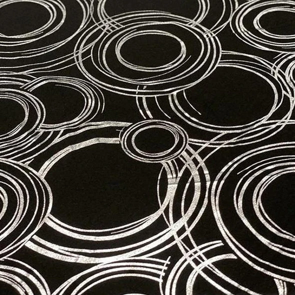 Fabric Collection: This fabric has a Polyester base with our metallic “Orbit” print throughout.
