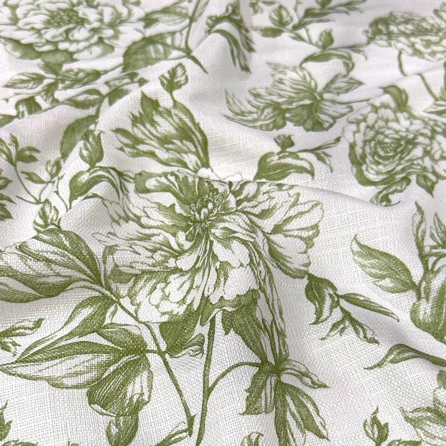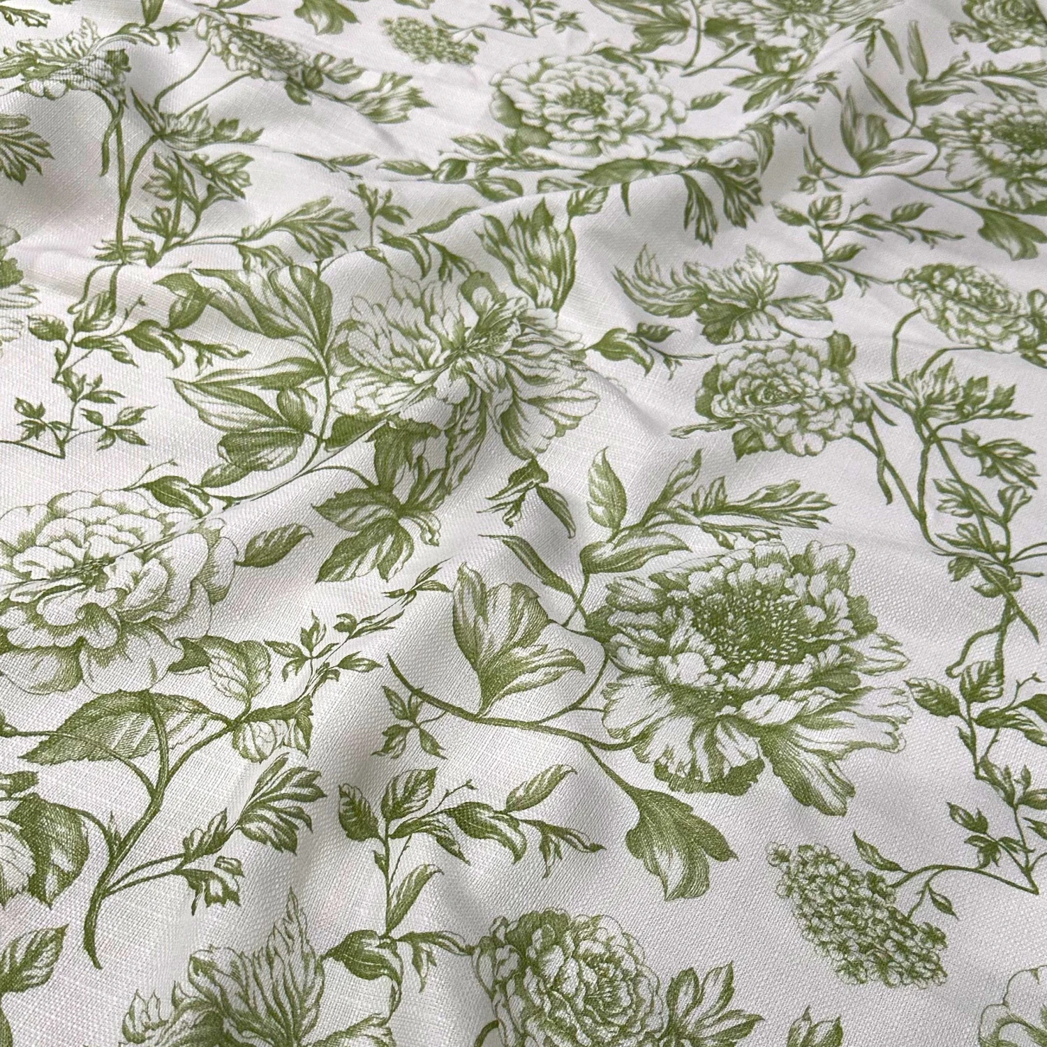 Fabric Collection: Our Artistry Bloom fabric offers a gorgeous toile de jouy vintage floral pattern on a white base. This stunning design is printed on a polyester fabric which also has a rustic slub-like textured finish.