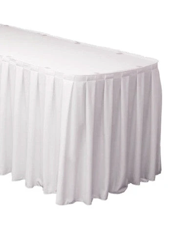 Our Table Skirts are made in our Premium Poly Poplin fabric and have a 2″ velcro backing. Skirt Clips sold separately.