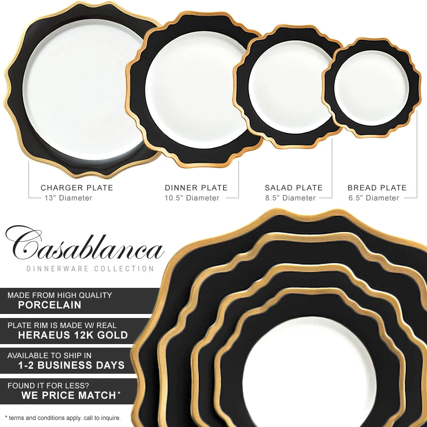 | 13″ Charger Plate | $43.00 per plate | $33.00 per plate / $660.00 for all 20pcs |
