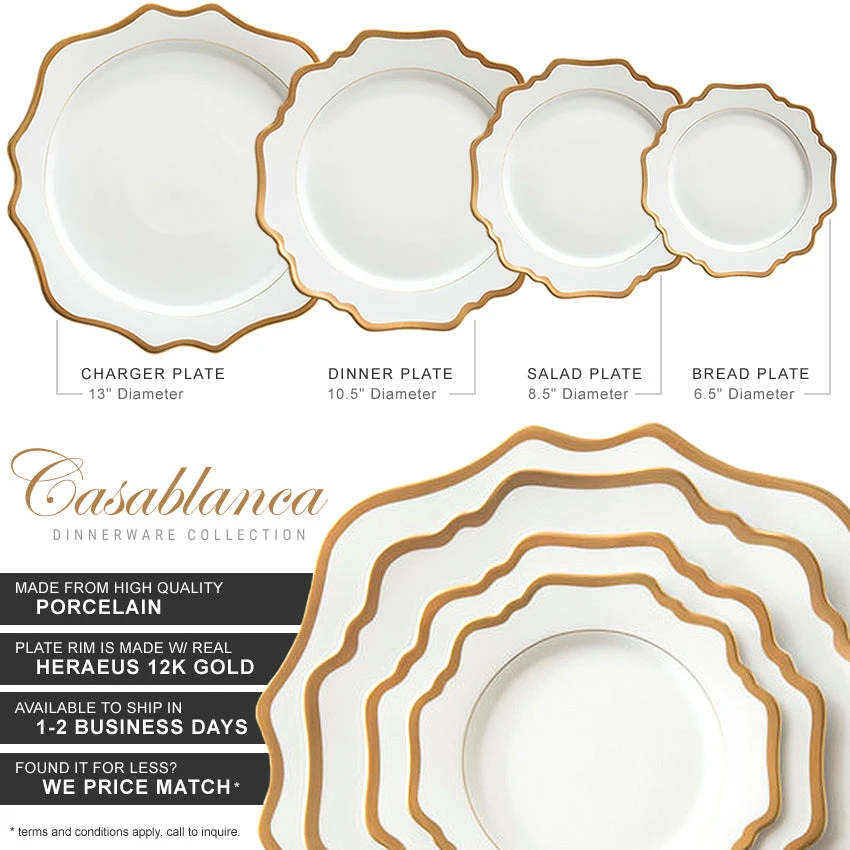 | 13″ Charger Plate | $43.00 per plate | $33.00 per plate / $660.00 for all 20pcs |