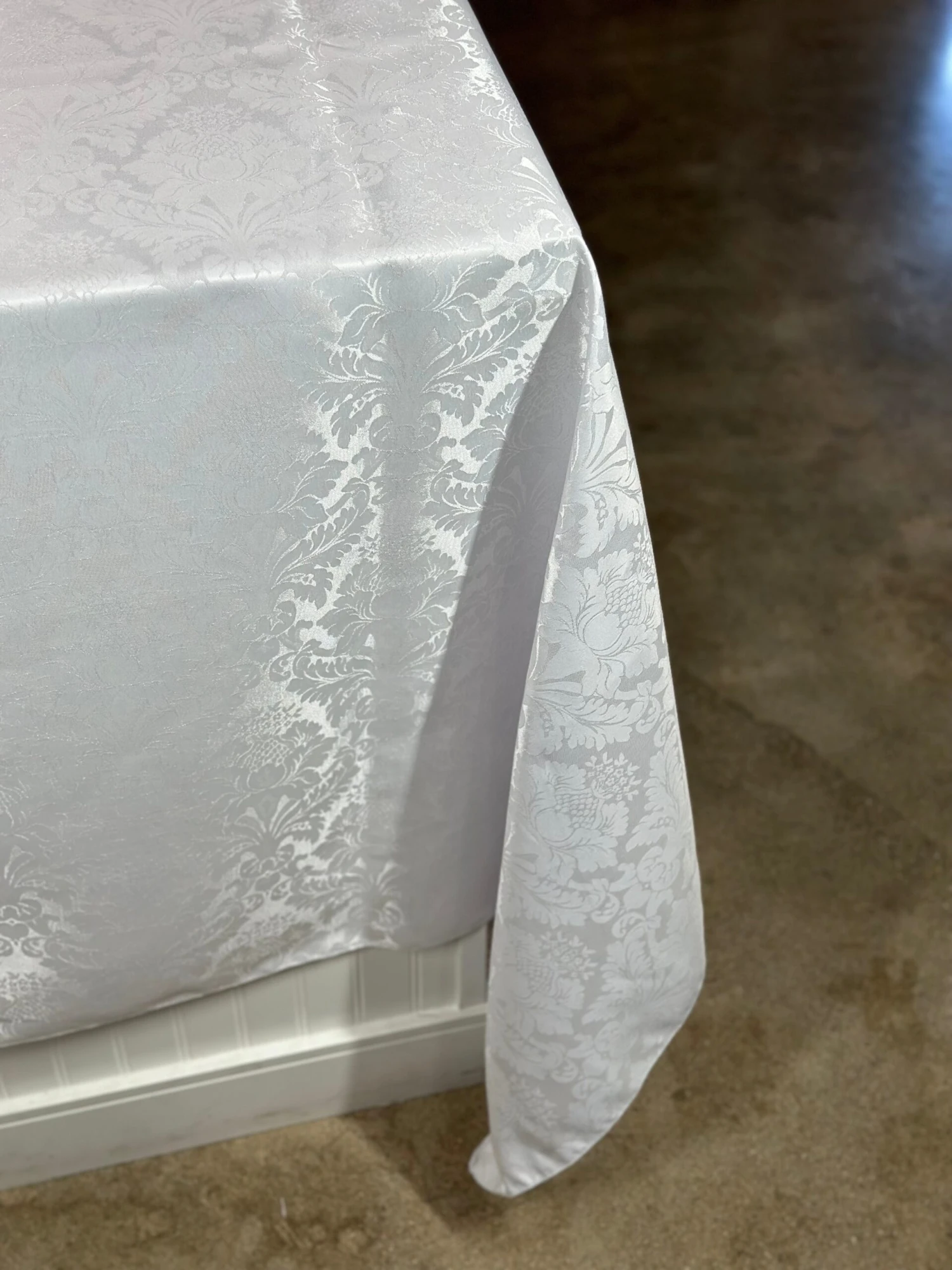 Table linen sizes that exceed the width of the fabric will have seams. All seams are sewn with 5 thread overlock sergers for long lasting durability.