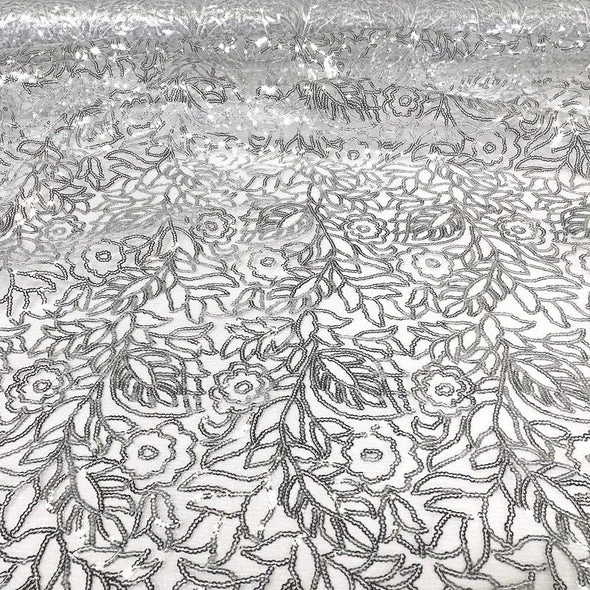 Fabric Collection: This material has a sheer base w/ a sequins embroidery which makes a floral design.