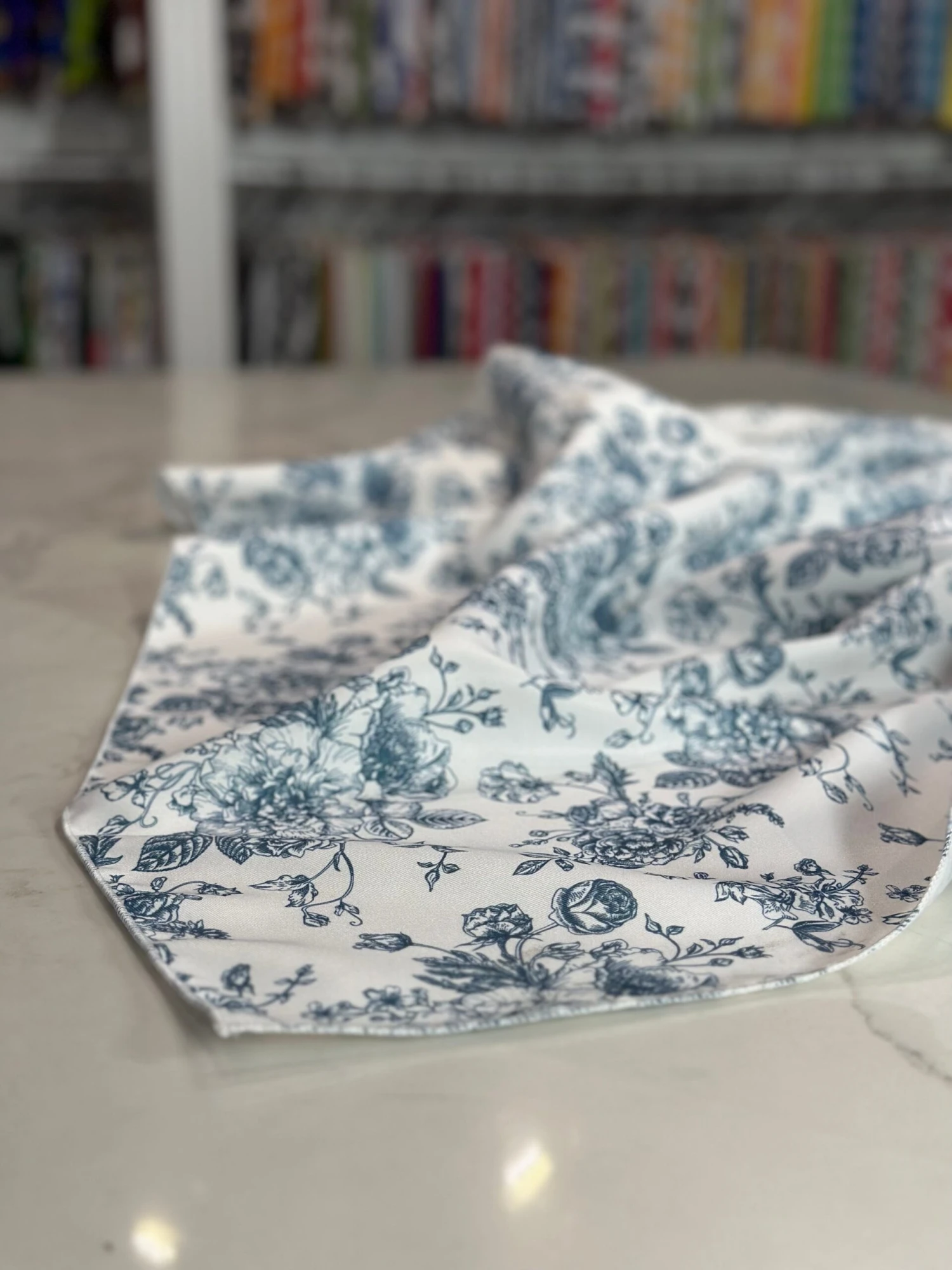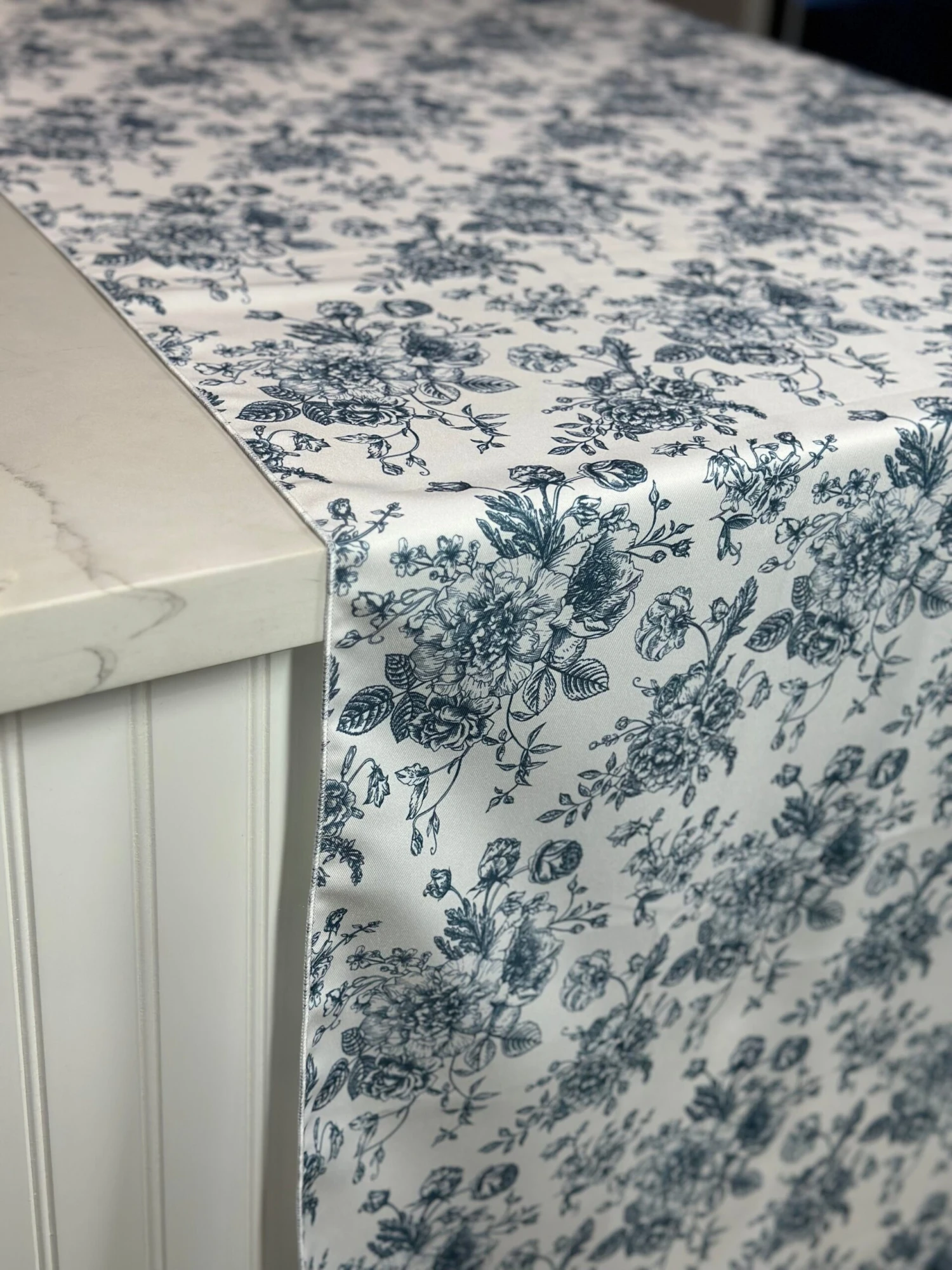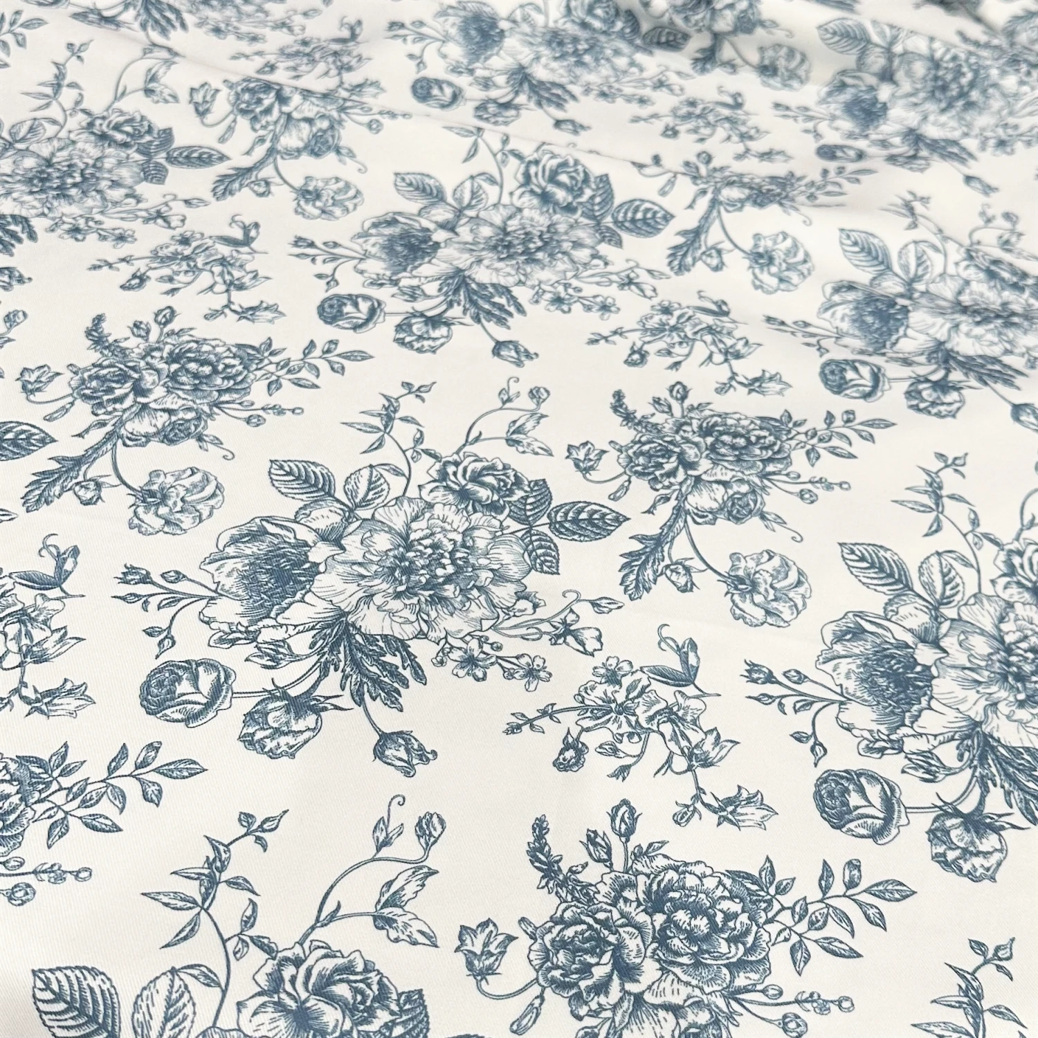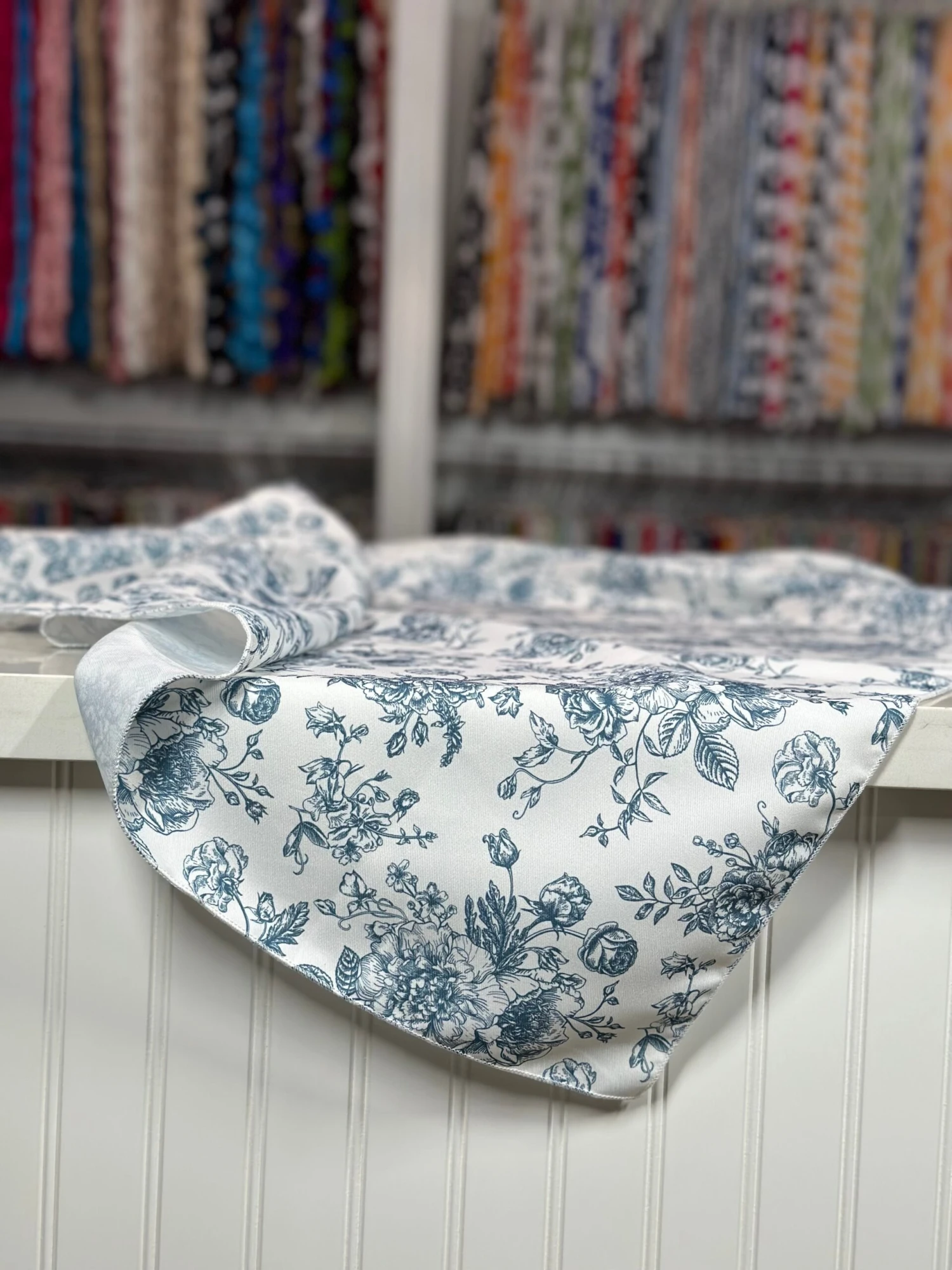 Fabric Collection: This fabric has a polyester base with our “French Toile” print in Copen Perry color throughout.