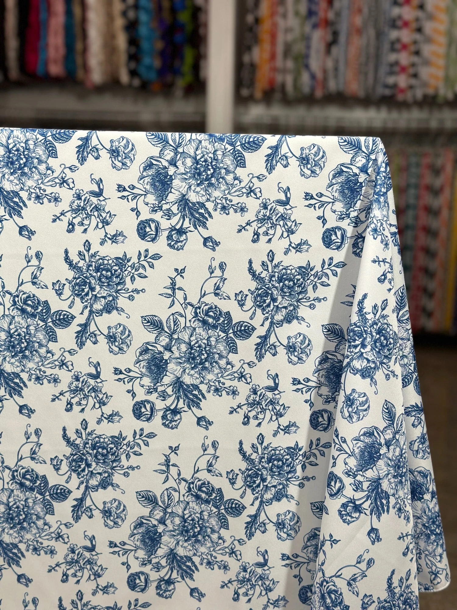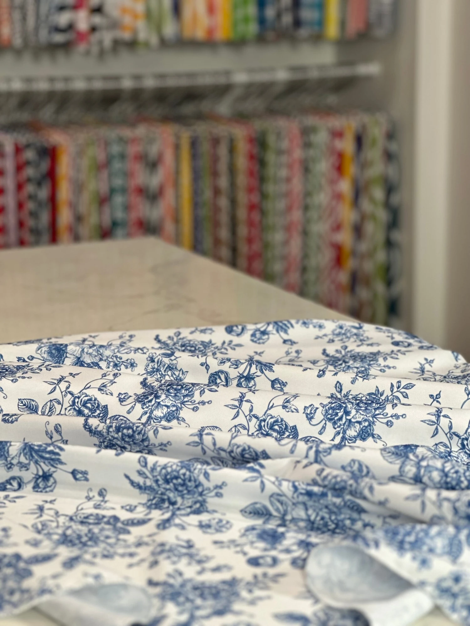 Fabric Collection: This fabric has a polyester base with our “French Toile” print throughout. This is the original version of this print in the traditional toile color.