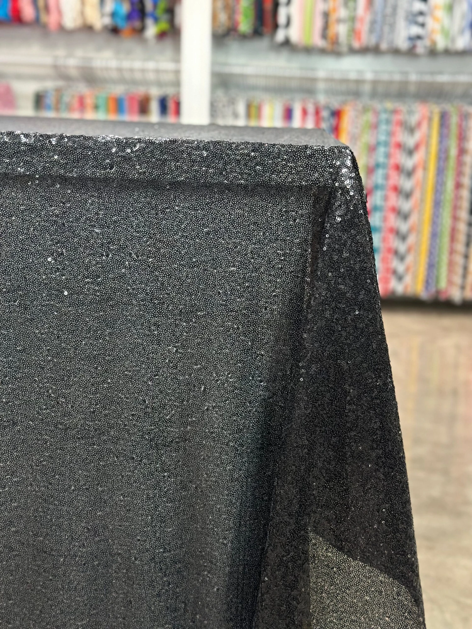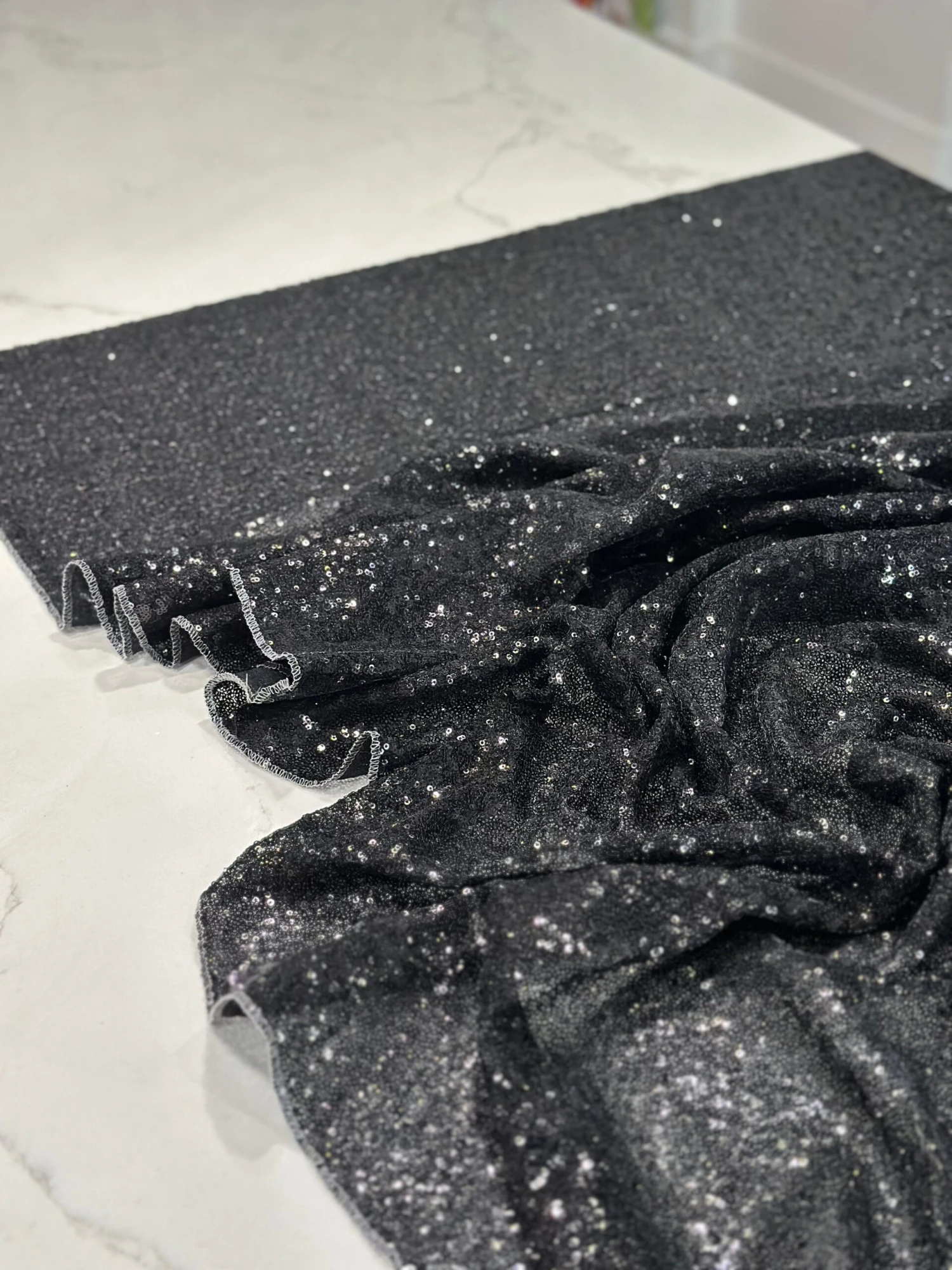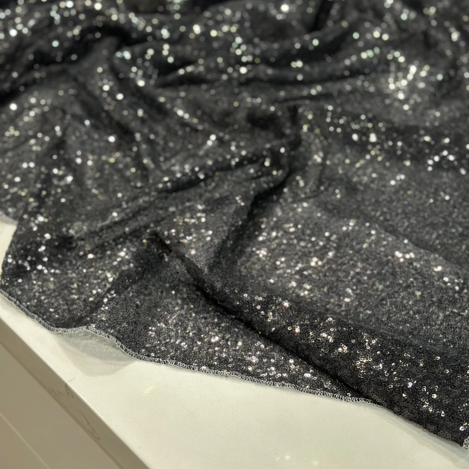 Fabric Collection: This fabric has a mesh base w/ mini sequins clusters embroidered throughout the fabric which gives it a solid look.