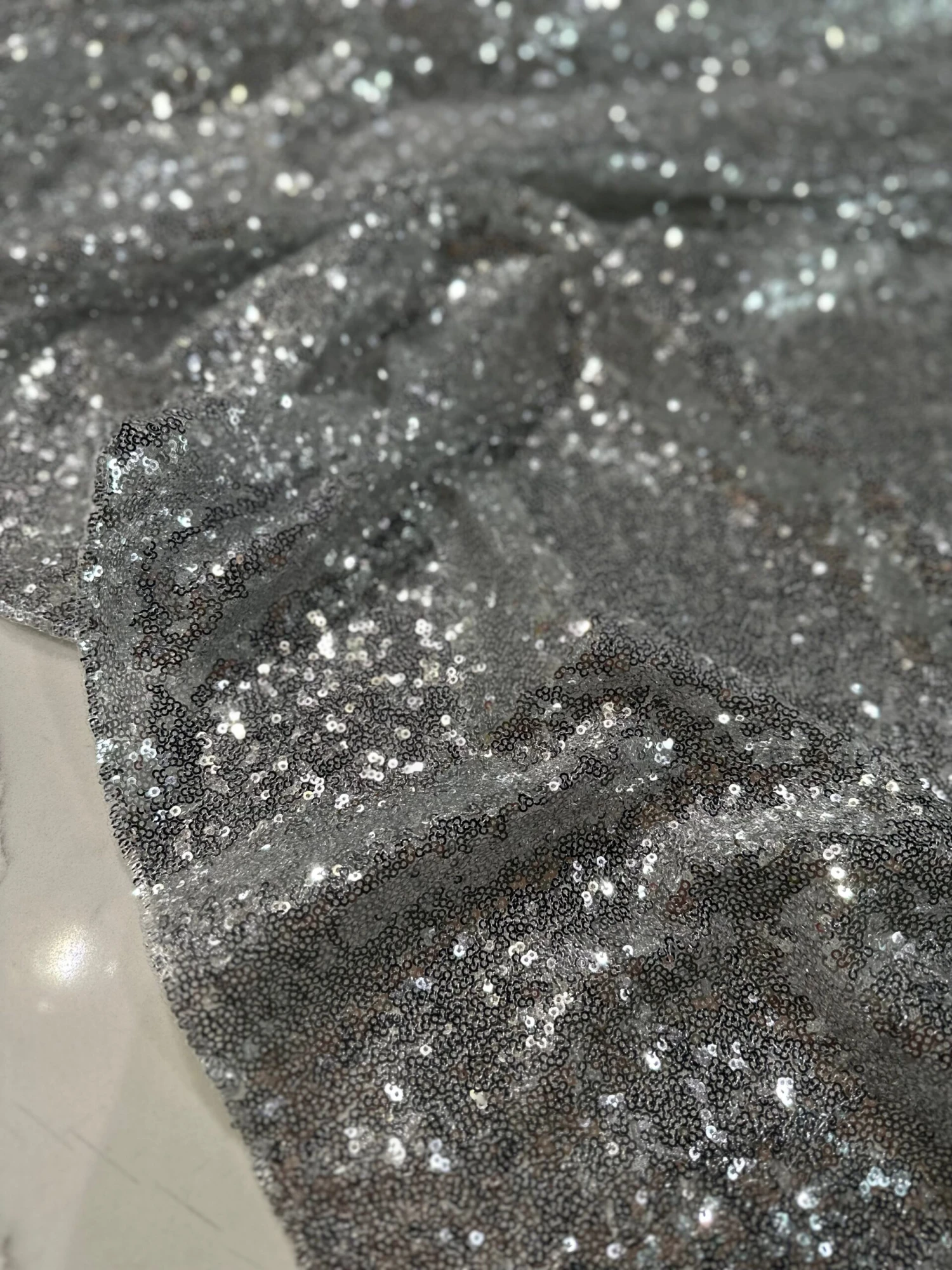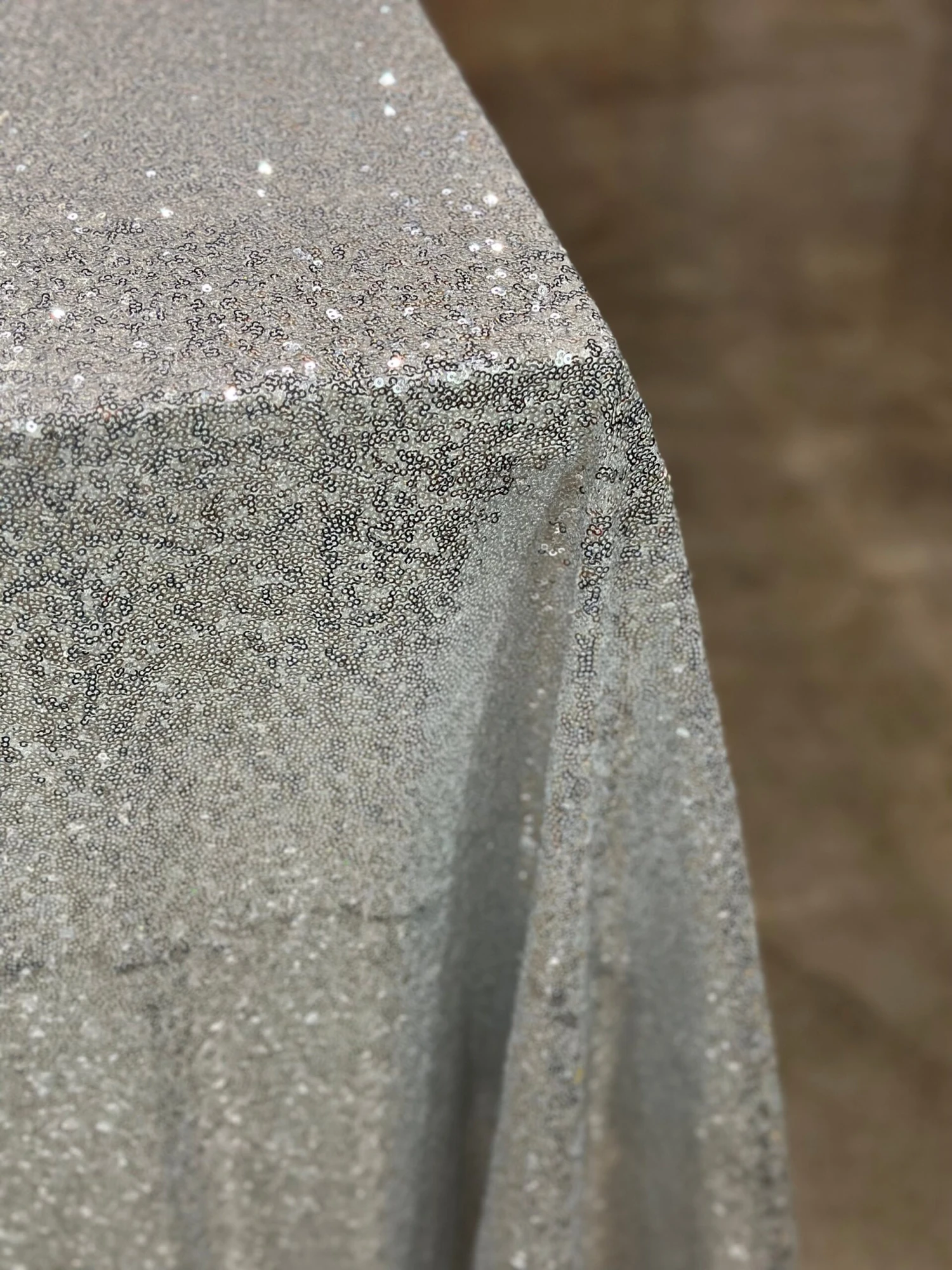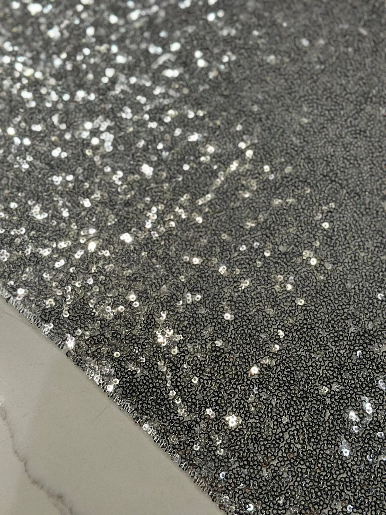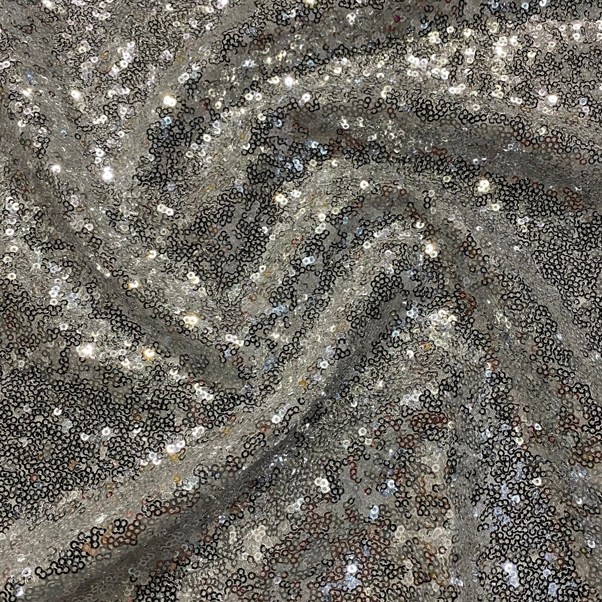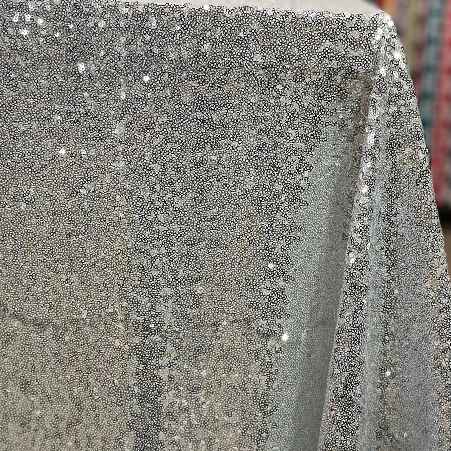 Fabric Collection: This fabric has a mesh base w/ mini sequins clusters embroidered throughout the fabric which gives it a solid look.