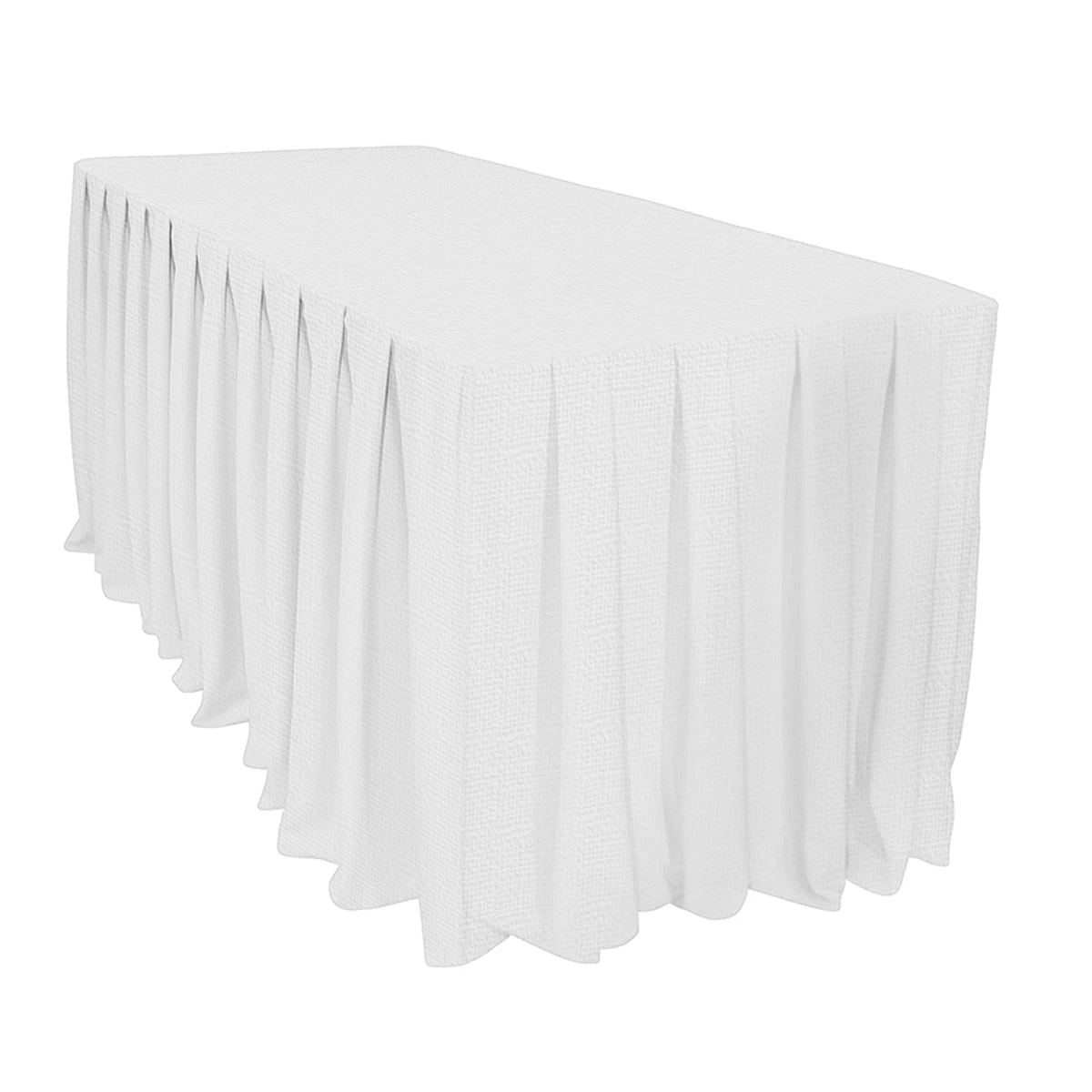 Shirred Pleat – Fitted look with a shirred pleated skirt around and flat table top.