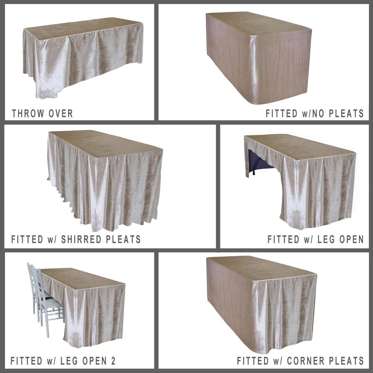 ORDERING INSTRUCTIONS: Step 1: Choose your table type/size. > Step 2: Choose your Linen Fit style. > Step 3: Select Qty and Color. > Step 4: Add to cart and proceed to checkout.