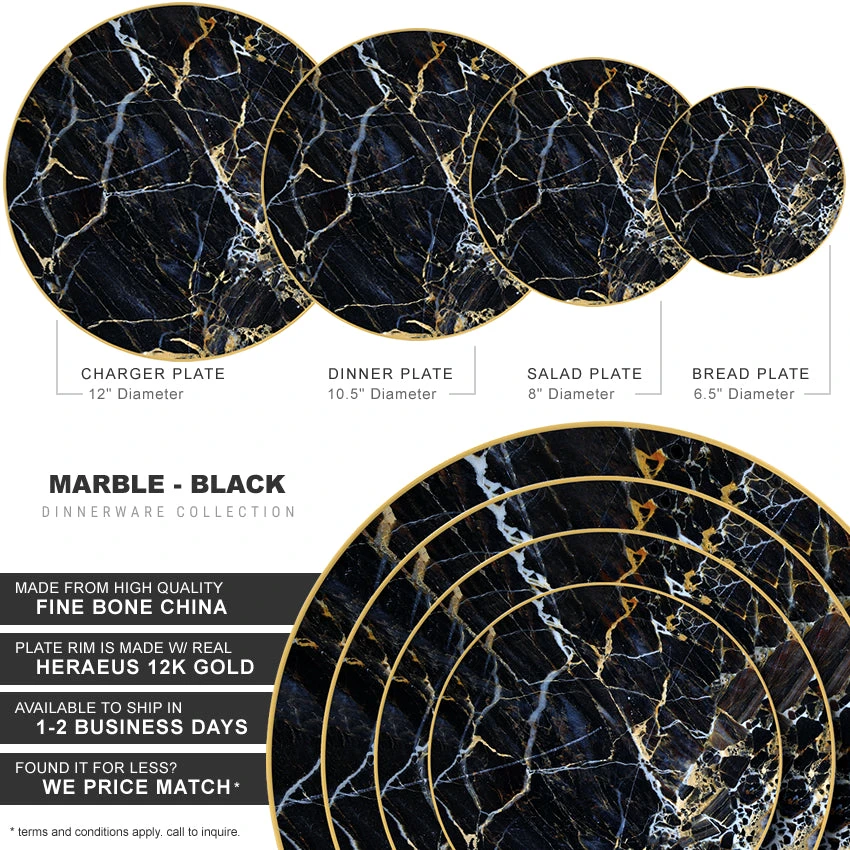 | 12″ Charger Plate | $74.00 per plate | $57.00 per plate / $1140.00 for all 20pcs |