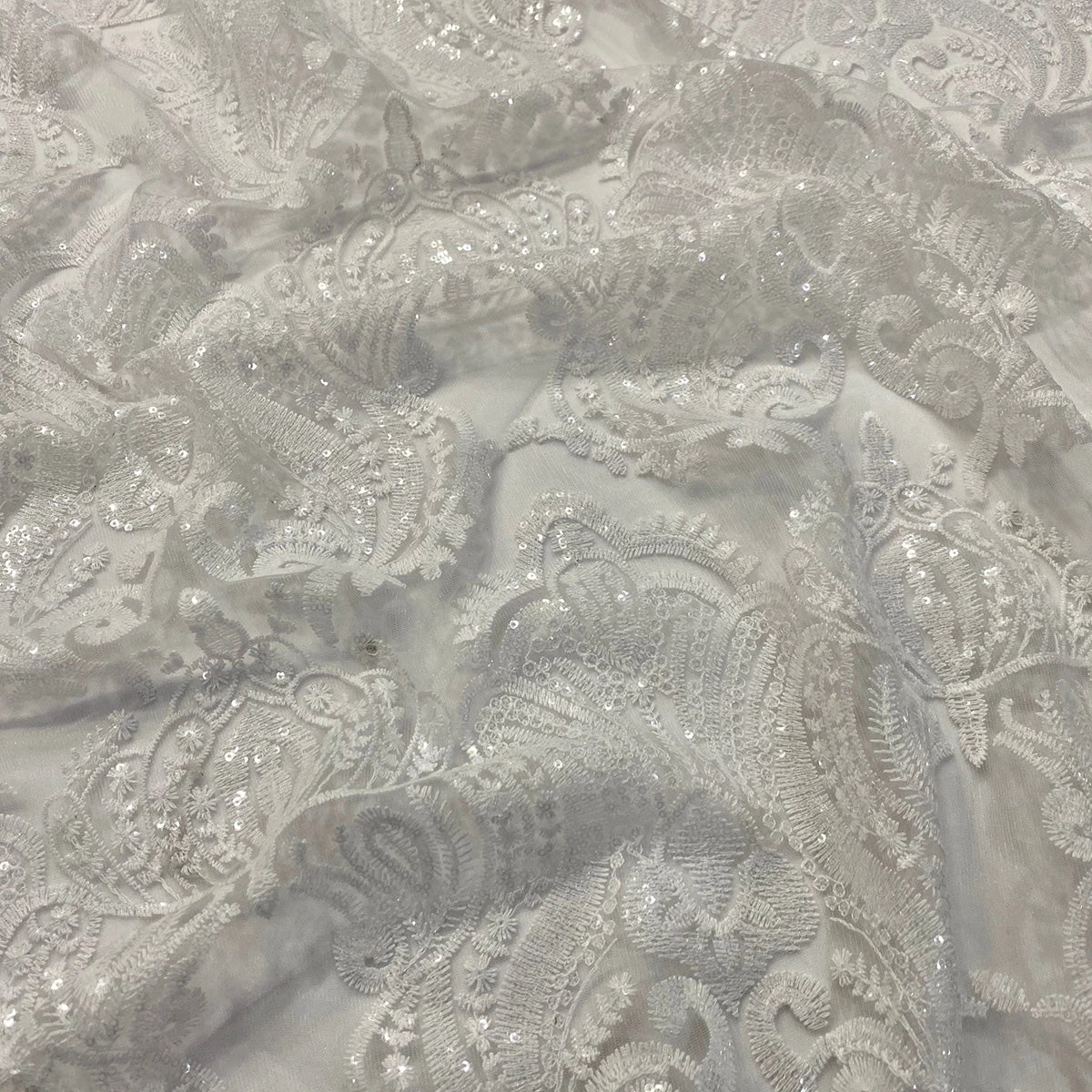 Fabric Collection: This fabric has a mesh base w/ our gorgeous embroidered & sequined design throughout the fabric.
