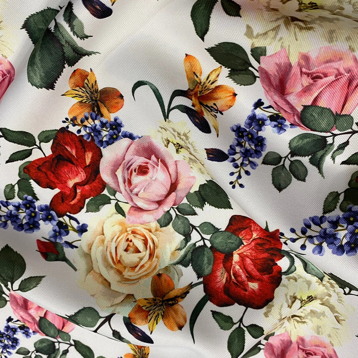 Fabric Collection: This fabric is a Polyester base with a multi-color floral print throughout.