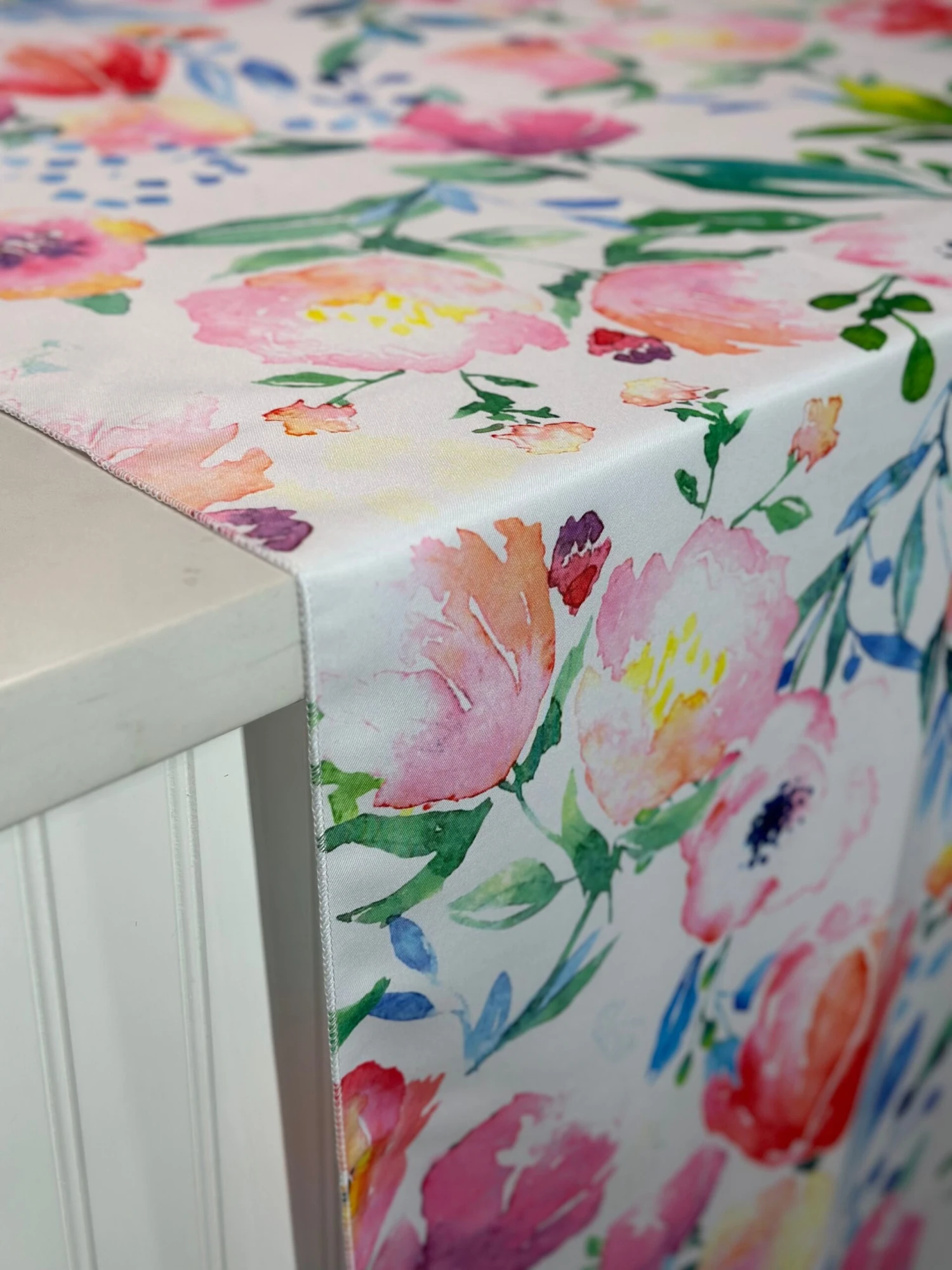 Fabric Collection: This fabric is a Polyester base with our multi-color “Watercolor Bouquet” print throughout.