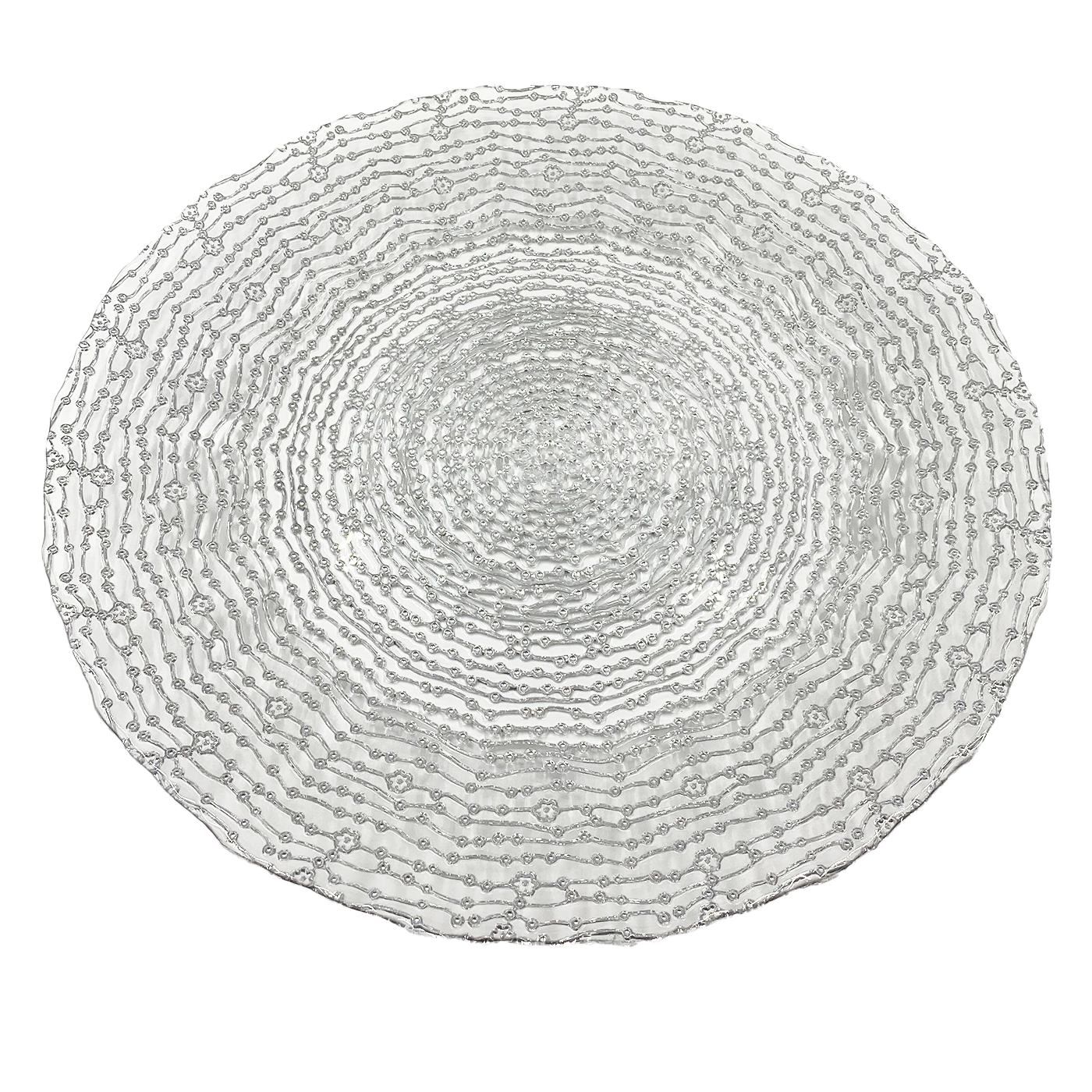 Color: Glass with our unique beaded webbed design in silver